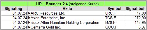 Hier veröffentliche ich die Ergebnisse meiner Bouncer-Screener. Für ein besseres Verständnis empfehle ich unbedingt, die Erklärungen in dieser Anleitung zu lesen, die bei Bedarf auch immer ein Update erfährt. Hier geht es zu dem Beitrag JoTrader´s Anleitung Bouncer-Screener ☝️☝️☝️☝️ oder Du schaust das auf meinem Youtube-Kanal an >>>dazu einfach hier klicken!<<<