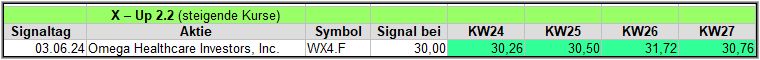 Wie schon in der KW20, wurde hier erneut ein Signal für Omega Health generiert und nach der 4. Woche liegt der Wert weiter im Plus.![]()