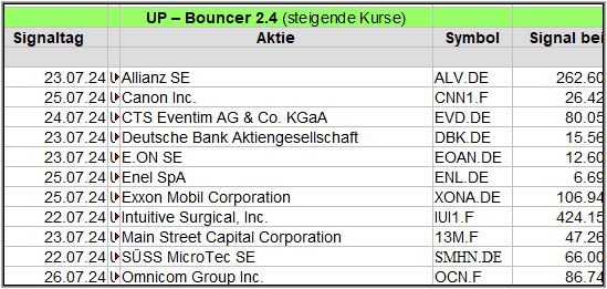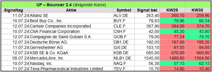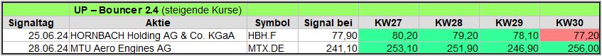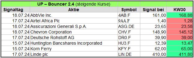 Hier veröffentliche ich die Ergebnisse meiner Bouncer-Screener, sie über 4 Wochen, ein Kursupdate erhalten, um die Wirksamkeit zu prüfen. Bitte die Hinweise am Ende beachten.