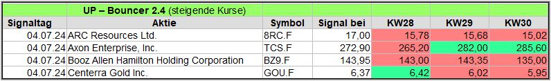 Rückblick: In dieser Woche sahen wir teils stärkere Kursrückgänge in Einzelwerten, was besonders am Donnerstag und Freitag der Fall war. Als dann auch noch Crowdstrike, mit einem misslungenen Update, die „halbe Welt“ lahmlegte, sorgte das für weiteren Druck auf die Kurse, was sich logischerweise auch auf die Kaufsignale der Vorwochen, negativ auswirkte.