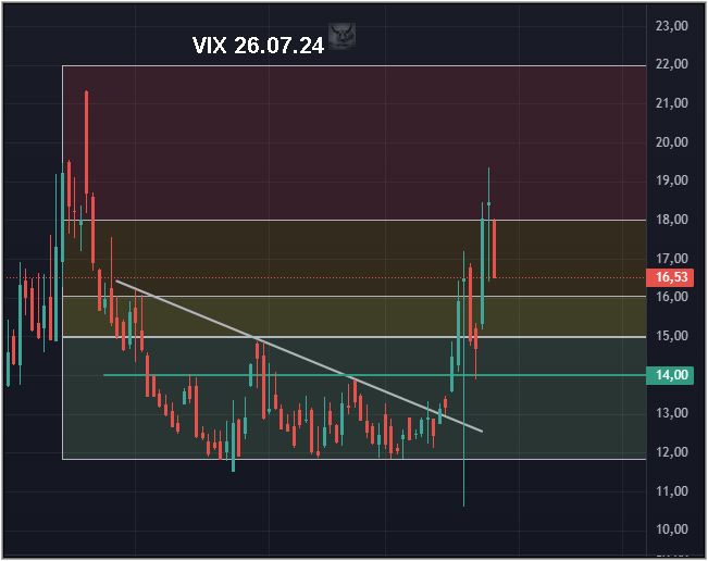 Der Vix war in dieser Woche zeitweise bis über 19$ gestiegen, gab aber vor dem Wochenende wieder deutlich nach.