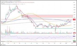 Allerdings scheint sich das Chartbild weiter aufzuhellen, denn denn die EMA20 steigt relativ steil an und könnte demnächst auch die 200 Wochenlinie nach oben durchstoßen. Die Frage ist dann ober, wo sich der Kurs bis dahin befinden wird.