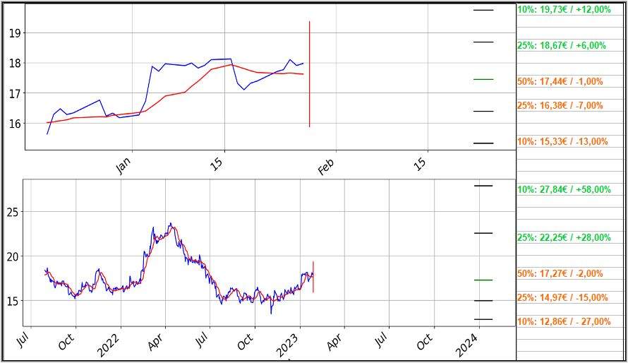 - Eintrittswahrscheinlichkeit 10% / Preisziel 19,73€ / was einem Anstieg von +12% entspräche.