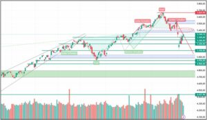 Gibt der Kurs aber erneut unter die Nackenlinie der inversen S-K-S UND unter das rot markierte GAP Up nach (ich habe dieses etwas nach rechts verschoben), dürfte der vor Wochen genannte Zielbereich 5.260 – 5.300$ angesteuert werden.