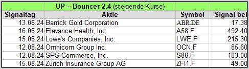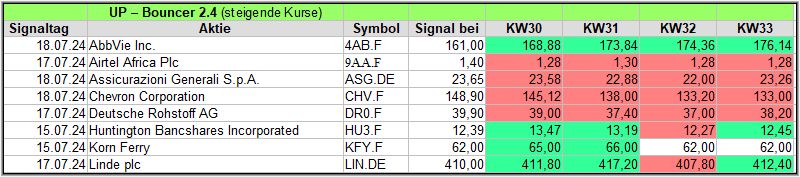 Hier veröffentliche ich die Ergebnisse meiner Bouncer-Screener, sie über 4 Wochen, ein Kursupdate erhalten, um die Wirksamkeit zu prüfen. Bitte die Hinweise am Ende beachten.