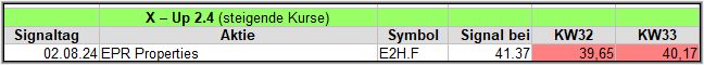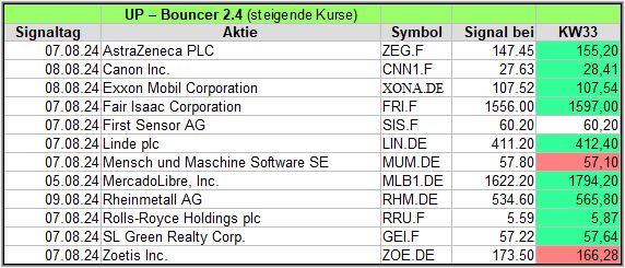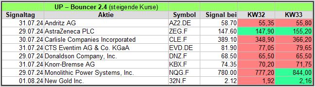 In dieser Woche gab es 8 Signale und nach der schwierigen KW32, liegen nur 3 (1) von 8 Werten im Plus.