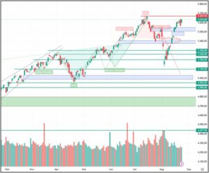 Ansonsten fokussierten sich die Erwartungen dieser Woche auf das Notenbanker Treffen in Jackson Hole, wo FED Chef Powell am Freitag eine Rede halten soll. Die Masse der Anleger ( vor allem die Medien) versprachen sich von dieser Rede eine Festlegung der FED, dass im September GARANTIERT die Zinsen gesenkt werden. Powell wäre schön dumm, wenn er diesem Wunsch nachkäme und er sich dadurch den Notausgang, selbst verschließen würde, den er im Fall der Fälle aber vielleicht noch benötigt. Am Donnerstag gaben die Tech-Werte überraschend stark nach und erschreckten die Ersten….sind sich da einige doch nicht sicher gewesen??