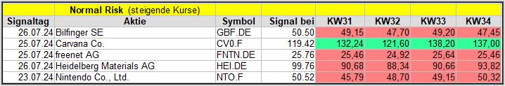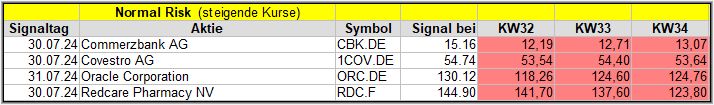 Nachfolgend die Screener-Ergebnisse aus der KW30, KW31, KW32 und KW33, bezogen auf die Schlusskurse in KW34/24.