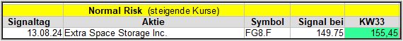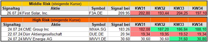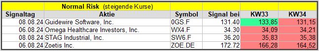 KW33 und KW34 profitierten wieder eher die Tech-Werte, so dass sich die früheren Signale kaum erholen konnten, es sei denn, diese waren aus dem erwähnten Bereich.