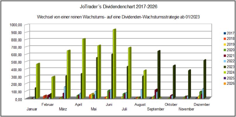 In der kompakten Übersicht der Jahresdividenden von 2017-2026, hat der Balken für 2024 inzwischen bereits seit April, die Gesamtjahres-Dividenden der Jahre 2017 – 2022 überschritten.