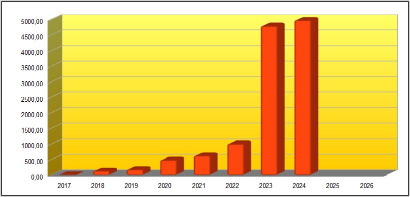 In der nachfolgenden kumulierten Jahresübersicht, welche den Bereich seit 2017 umfasst, liegt der Juni 2024 mit einer Gesamt-Ausschüttung von 939,61€ an der Spitze.