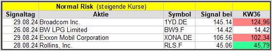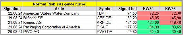 Den Kursverlauf der einzelnen Werte verfolge ich ab einem generierten Signal, über einen Zeitraum von 4 Wochen und mit einem wöchentlichen Update. (Kursiv geschriebene Texte sind in der Regel Texte aus der Vergangenheit bzw. sind Hinweise.)