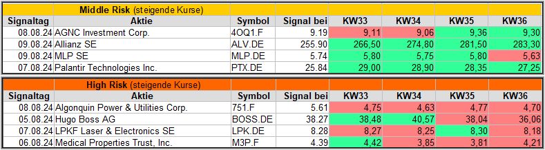 Bei den Middle Risk Signalen erreichten 3 von 4 Signalen einen Gewinn.