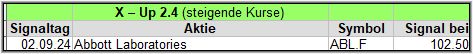 Dieser Screener setzt auf steigende Kurse und könnte auf einen neuen Trend nach oben hindeuten. Die Anzahl der Signale lässt auch einen Rückschluss auf den Gesamtmarkt zu, der möglicherweise bullischer wird, wenn viele „UP“ Signale generiert werden.