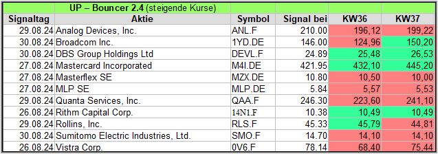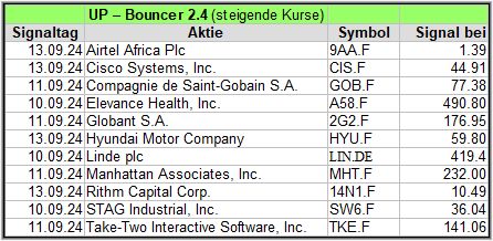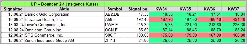 Die meisten Signale in dieser Woche gab es im UP-Bouncer, nämlich 11 Signale.