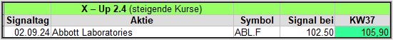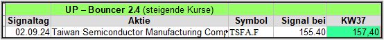 In dieser Woche gab es 6 Signale und nach der 4. Woche liegen 4 (3) der 6 Werte im Plus.![]()