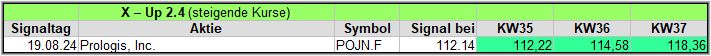 In dieser Woche gab es mit Prologis wieder einmal ein Signal und dieses liegt auch nach der 3. Woche im Plus. ![]()