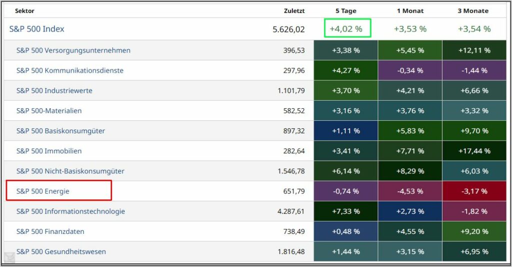 Nachfolgend die Sektorenübersicht innerhalb des S&P500.