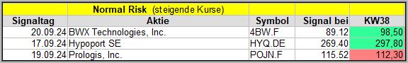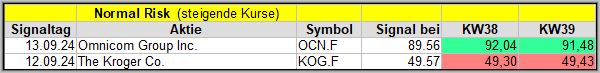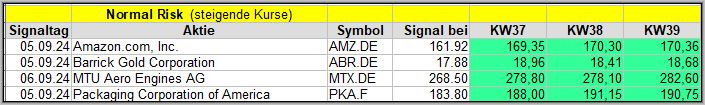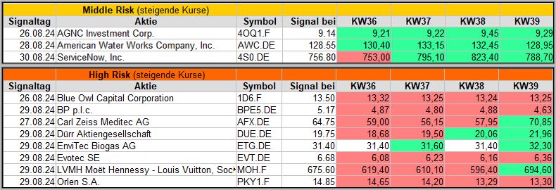 In dieser Woche wurde 5 Signale generiert, die teils recht vielversprechend erscheinen. Wir werden sehen, wie sie sich in den nächsten 4 Wochen schlagen werden.