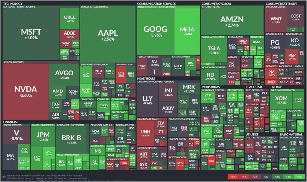 Die Heatmap zeigt sich zur Vorwoche erneut „durchwachsen“ . Nvidia ist wieder im Plus, Microsoft und andere sind dafür im Minus