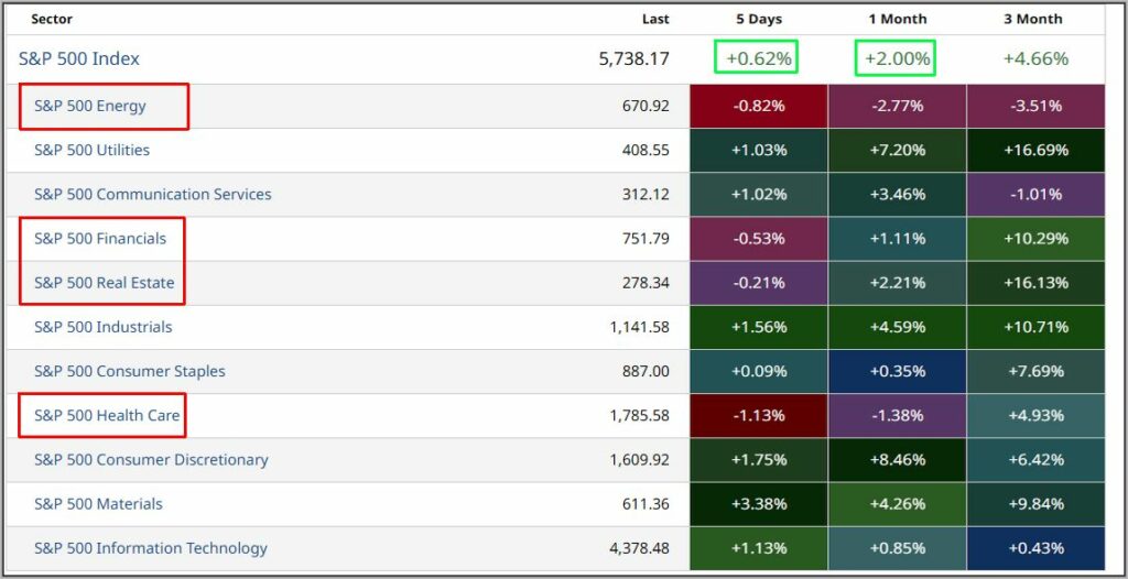 Nachfolgend die Sektorenübersicht innerhalb des S&P500.