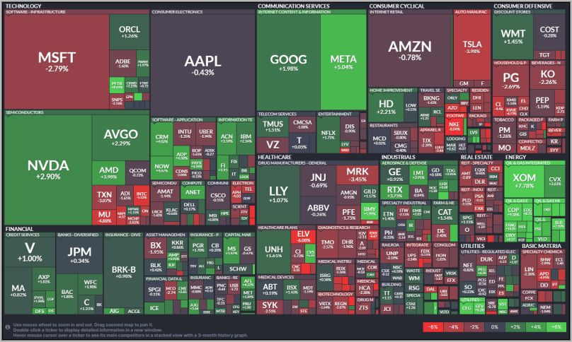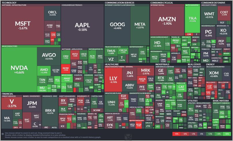 Die Heatmap zeigt sich zur Vorwoche erneut „durchwachsen“ . Nvidia ist weiter im Plus, Microsoft und andere sind dafür weiter im Minus.