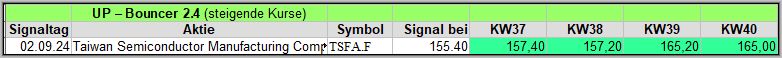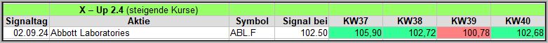 Nach der 3. Woche liegen 4 (4) der 11 Signale im Plus, teilweise über 20€/Aktie. ![]()