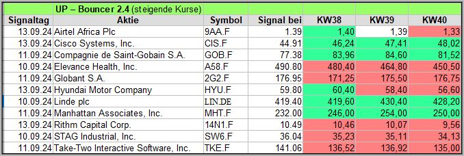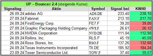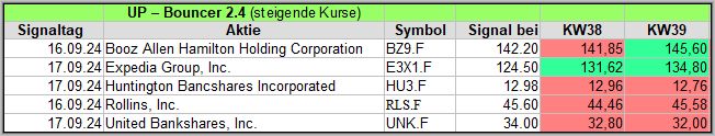 Die meisten Signale in dieser Woche, gab es im UP-Bouncer, nämlich 11 Signale.