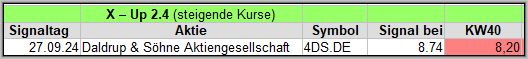 Die täglichen Signale veröffentliche ich in meiner Facebook-Gruppe „Aktien Chart Check“, die wöchentlichen Zusammenfassungen inkl. der Ergebnis-Updates, veröffentliche ich auch hier im Blog.