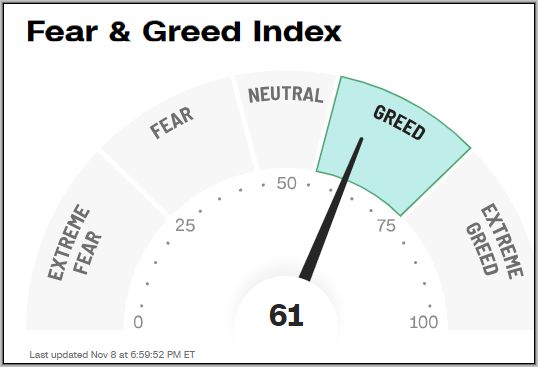 Im Vergleich zur Vorwoche kletterte er von 49 auf 61 Punkte und liegt im, Bereich der Gier.