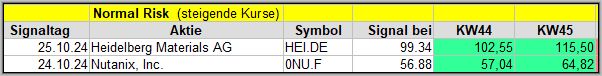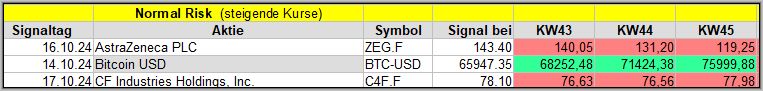Diese KW43 Woche war anfangs nicht besonders gut und durch den Rücksetzer wurden natürlich viele frühere Signale negativ beeinträchtigt, wie wir bei den vorigen Signalen teilweise sehen.