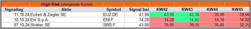 Die High Risk Signale der KW41 kamen in den letzten turbulenten Wochen unter die Räder und schlossen alle im Minus.