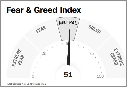 Im Vergleich zur Vorwoche gab der Fear & Greed Index von 61 Punkten auf 51 Punkten nach und liegt nun, wie vor 2 Wochen (mit 49 Pkt.), wieder fast in der Mitte des neutralen Bereichs der Gier.