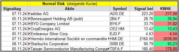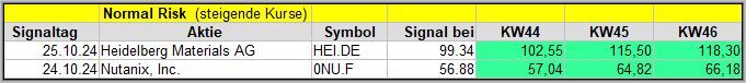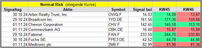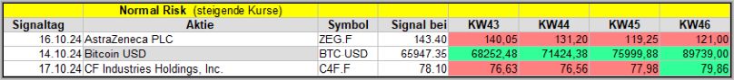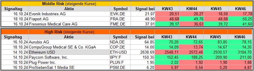 Diese KW43 Woche war anfangs nicht besonders gut und durch den Rücksetzer wurden natürlich viele frühere Signale negativ beeinträchtigt, wie wir bei den vorigen Signalen teilweise sehen.