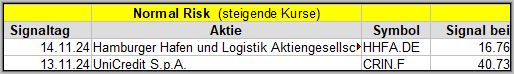 Den Kursverlauf der einzelnen Werte verfolge ich ab einem generierten Signal, über einen Zeitraum von 4 Wochen und mit einem wöchentlichen Update. (Kursiv geschriebene Texte sind in der Regel Texte aus der Vergangenheit bzw. sind Hinweise.)