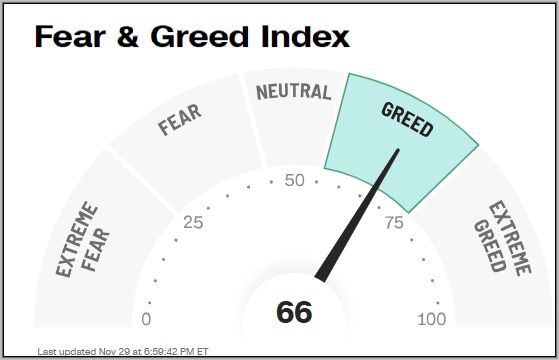 Im Vergleich zur Vorwoche konnte der Fear & Greed Index von 61 Punkten auf 66 Punkten ansteigen und liegt nun im oberen Drittel der Gier., was auch dem Höchststand der Woche entspricht.