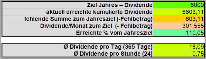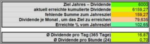 Das Ziel von 6.000€ an Dividendeneinnahmen wurde bereits 2 Monate vor Jahresende überschritten.![]()