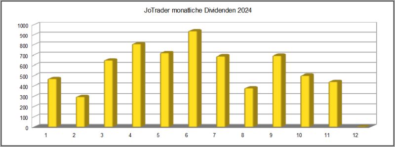 Die erste Grafik zeigt die monatlichen Dividenden-Einkünfte in 2024.