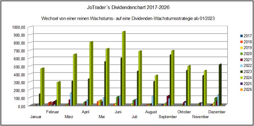In der kompakten Übersicht der Jahresdividenden von 2017-2026, hat der Balken für 2024 bereits seit April, die Gesamtjahres-Dividenden der Jahre 2017 – 2023 überschritten.