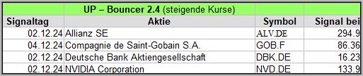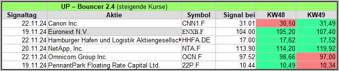 Nachfolgend die UP-Bouncer Screener-Ergebnisse der vergangenen 4 Wochen