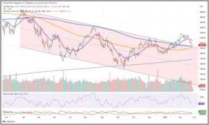 Der S&P500 ist bis zur SMA200 und der oberen Grenze des fallenden Kanals zurückgekommen und nun muss sich entscheiden, ob er sich nach oben abstoßen und durchstarten kann oder ob er zu einem heftigen Einbruch kommt, der bis 3.700$ nach unten gehen könnte