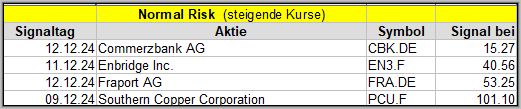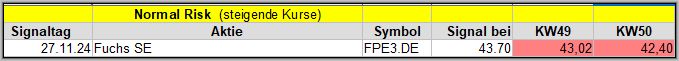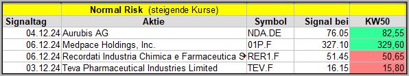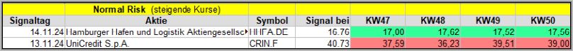 Den Kursverlauf der einzelnen Werte verfolge ich ab einem generierten Signal, über einen Zeitraum von 4 Wochen und mit einem wöchentlichen Update. (Kursiv geschriebene Texte sind in der Regel Texte aus der Vergangenheit bzw. sind Hinweise.)