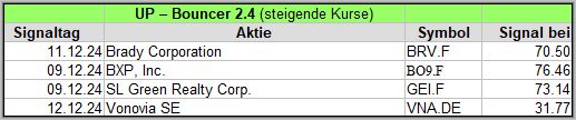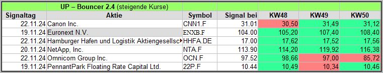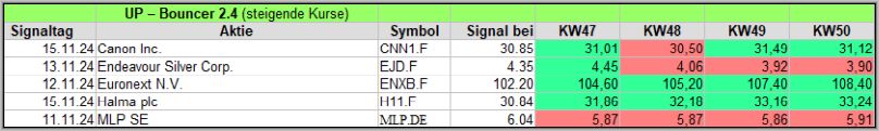 Nachfolgend die UP-Bouncer Screener-Ergebnisse der vergangenen 4 Wochen