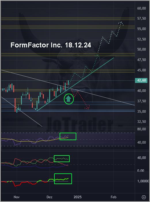 Die beiden Trendlinien (grün und grau) dürfen aber nicht wieder unterschritten werden, sonst könnt es bis auf 35€ abwärts gehen.