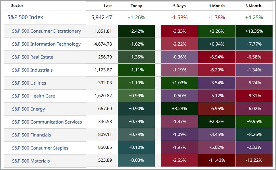 Am Freitag , dem 2. Handelstag, lagen ALLE 11 Sektoren im Plus und es flossen alleine am Freitag +1,26% (1,09%) an Liquidität in den Markt.