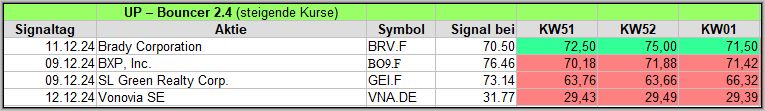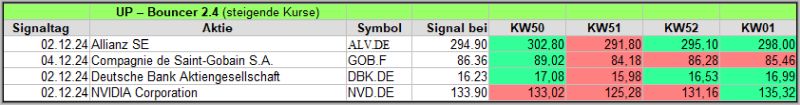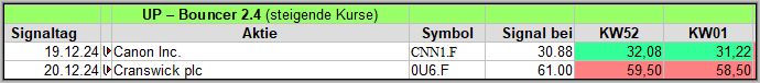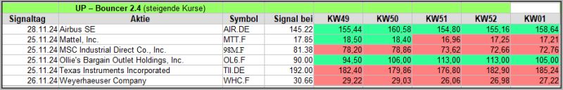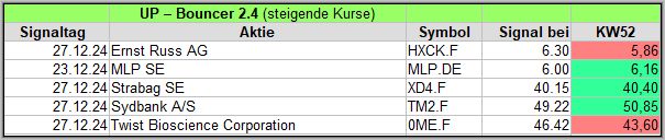Nachfolgend die UP-Bouncer Screener-Ergebnisse der vergangenen (ausnahmsweise) 5 Wochen
