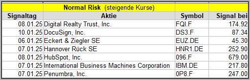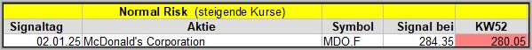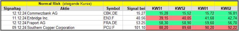 Den Kursverlauf der einzelnen Werte verfolge ich ab einem generierten Signal, über einen Zeitraum von 4 Wochen und mit einem wöchentlichen Update. (Kursiv geschriebene Texte sind in der Regel Texte aus der Vergangenheit bzw. sind Hinweise.)