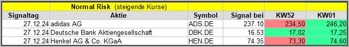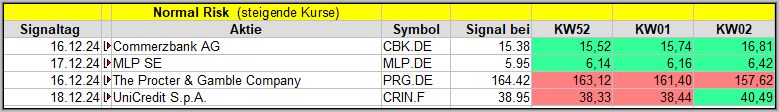 Von den 4 Signalen schafften es nach 4 Wochen immerhin 3 Werte ins Plus![]()