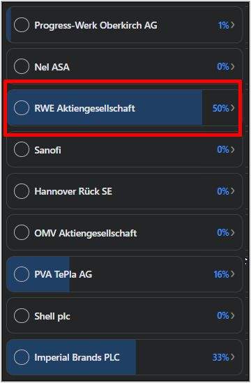 50% aller Stimmen entfielen auf RWE, gefolgt von Imperial Brands (33%) und PVA Tepla (16%)
