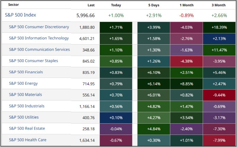 Am Freitag , lagen 9 ( der 11 Sektoren im Pluss (in der Vorwoche lagen am 10 von 11 im Minus) und es flossen alleine am Freitag 1,0% (-1,54%) an Liquidität in dem Markt.